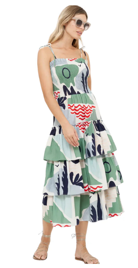 Smocked Tie Strap Ruffle Midi | Riviera Sage