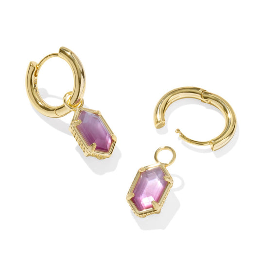 Kendra Scott Hallie Huggie Earrings / Gold Purple Watercolor Illusion