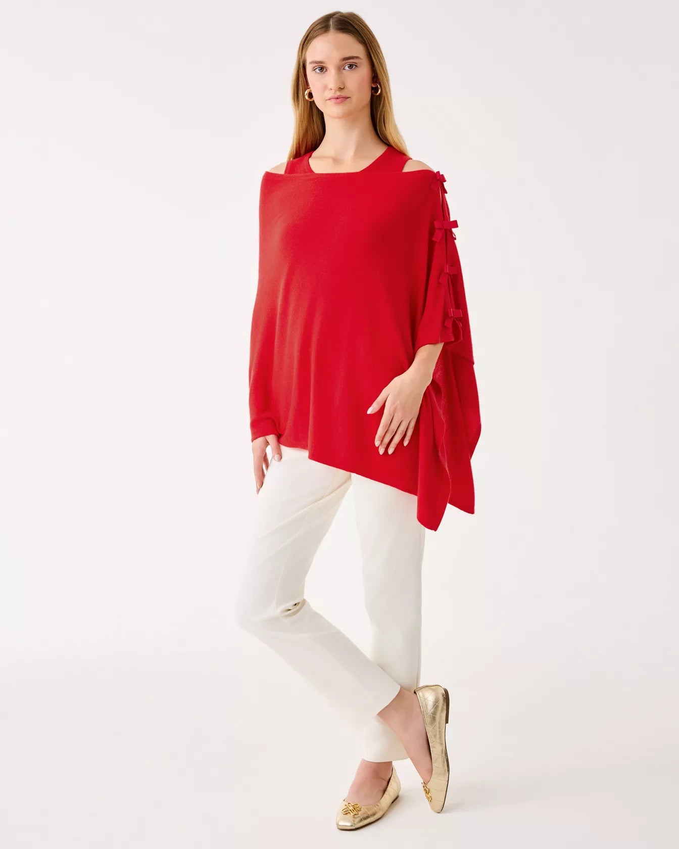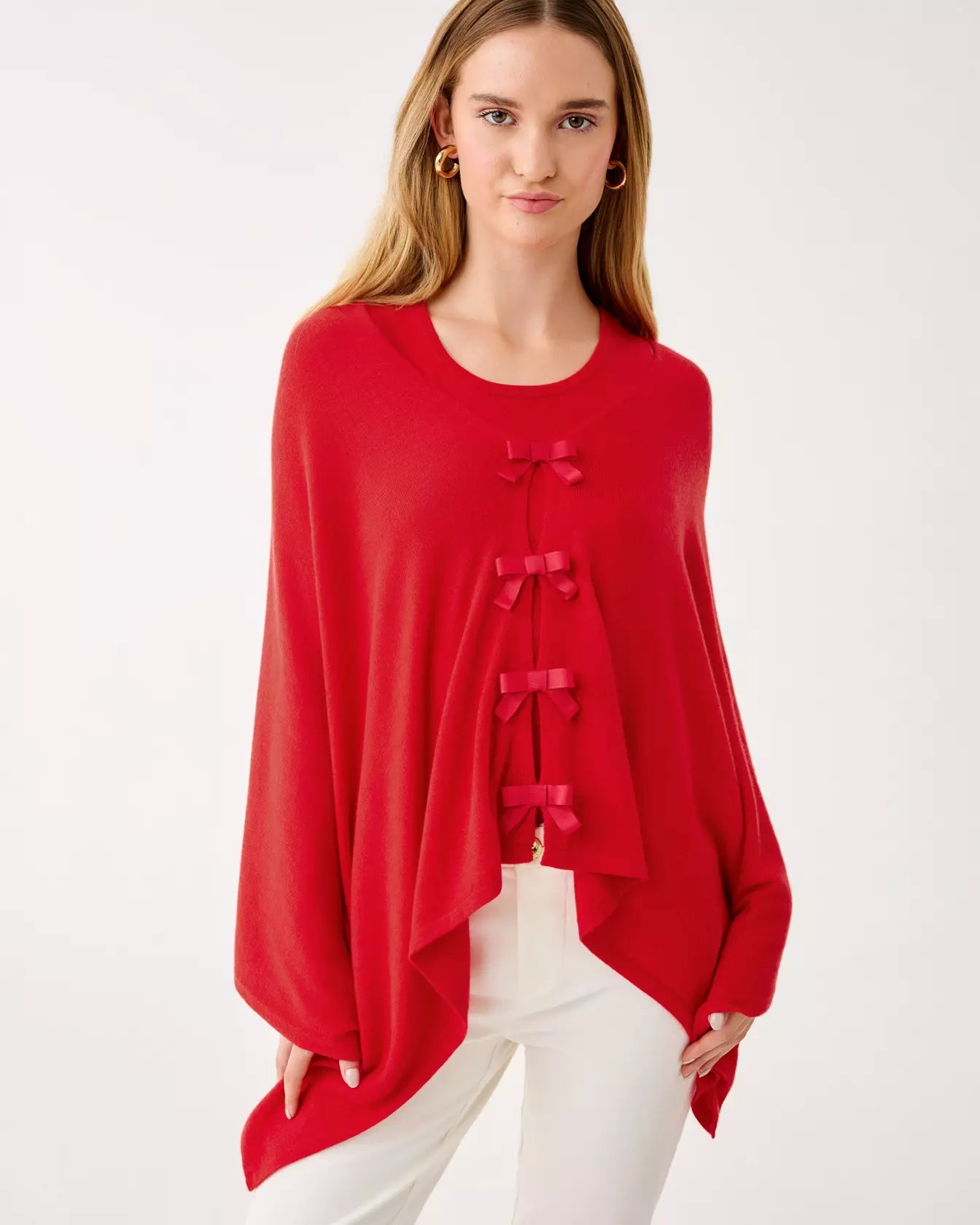 - Sweater wrap with bow details.