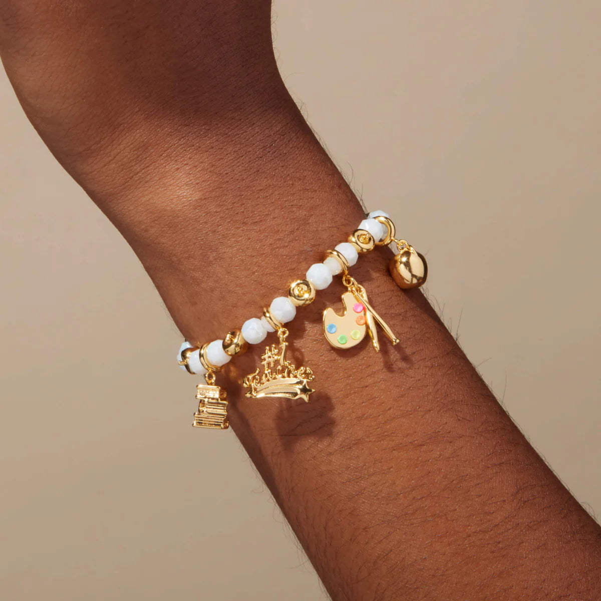• This bracelet features gold plated apple beads