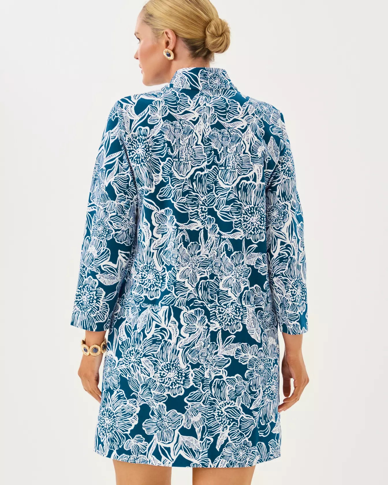 - Straight fit, 3/4 sleeve, pullover shift dress.