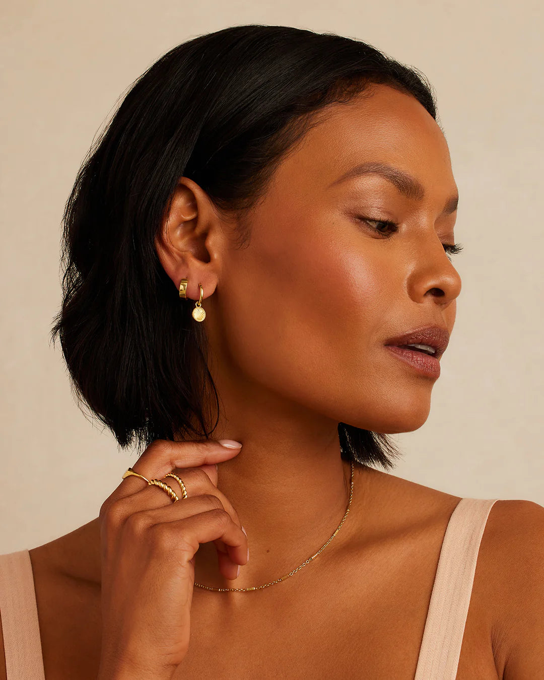 Inspired by the rays of the sun, these beautiful huggie earrings are designed to move with you. Perfect in your first piercing, these earrings will add a touch of style and elegance to any look.